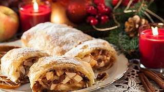 Homemade apple strudel with shortcrust pastry: