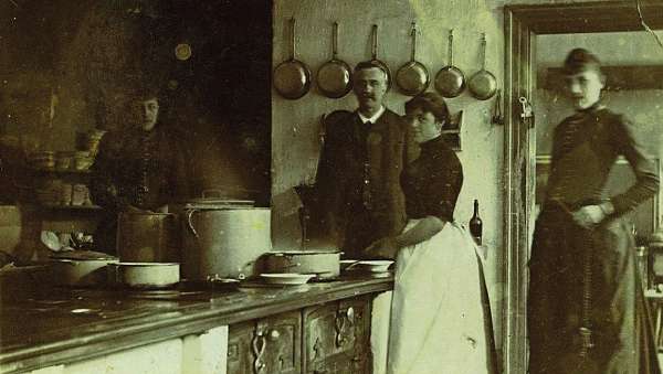 Werfen Sie einen Blick auf die Geschichte der Familie Weiß in Fürstenfeldbruck. Und hier ein Bild von Ludwig Weiß in der Küche mit den Töchtern Anna und Fanny Weiß (1890).