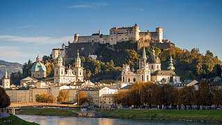 Morgens. Auf dem Weg zum Mönchsberg eröffnen sich charmante Einblicke in versteckte Winkel der Altstadt (seit 1996 UNESCO-Weltkulturerbe). Man kann auch bequem den Aufzug (im Berg!) nehmen. Oben angekommen, auf keinen Fall den Ausblick von der Terrasse vor dem Museum der Moderne über die Altstadt verpassen! Oder noch besser: Im Restaurant m32 mit bestem Panoramablick österreichische Köstlichkeiten genießen. Dann sind es zu Fuß nur noch ein paar Minuten hinauf zur Festung Hohensalzburg, dem Wahrzeichen der Stadt.